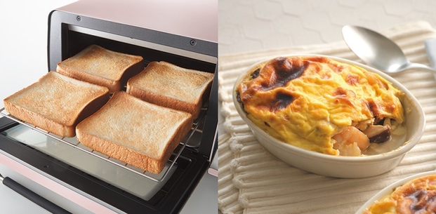 左・スチームモードで焼いたトーストはワンランク上の仕上がり。右・3モード搭載でレパートリーが広がる。