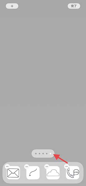 まずは、ウィジェットの背景透過に必要な、ホーム画面のスクショから用意しましょう。ホーム画面を長押しして1番右端のページに移動し、アイコンが設定されていないページを撮影してください。