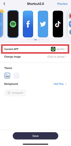 ウィジェット内のアプリを、『Current APP』で自分が設定したいアプリへと切り替えます。