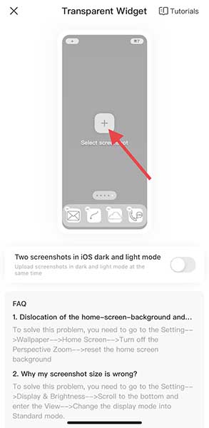 ホーム画面の中央にあるプラスボタンで、最初に撮影したスクショ画像をカメラロールより選んでくださいね。