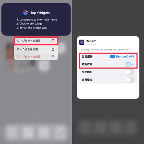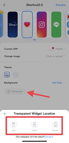 もう1度『Transparent』をタップして、ウィジェットの位置をtop/center/bottomから選択。