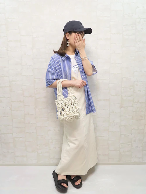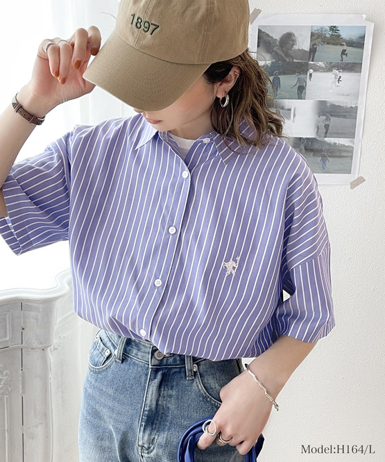 SNSで注目を集めている、爽やかな半袖ストライプシャツ。ワンポイントの小ぶりな刺繍が、大人かわいいアクセントになっています。