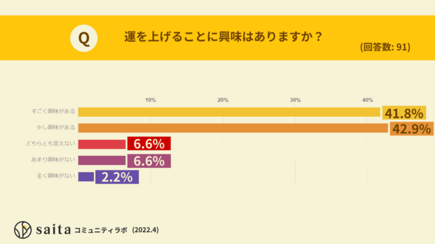 今回、saitaでは独自のコミュニティ組織「saitaコミュニティラボ」で、91人の女性に「運を上げること」についてアンケートを行いました。