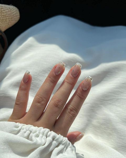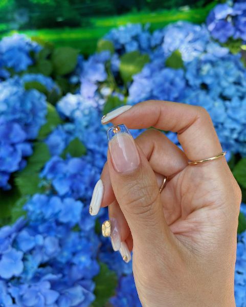 ここからは、「クリアフレンチ」を使ったおすすめのネイルデザインをご紹介。