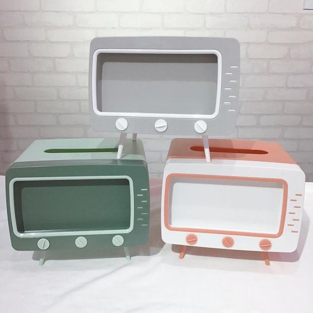 テレビのかたちをした、レトロでキュートな見た目のティッシュボックスです。