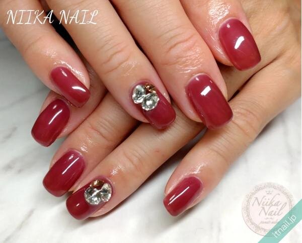 余裕があるときは、レッドのワンカラ―の根元にクリアストーンをビジュー盛りしてみましょう。キラッと輝いて素敵ですよ。1粒だけストーンを乗せるのも手軽です。