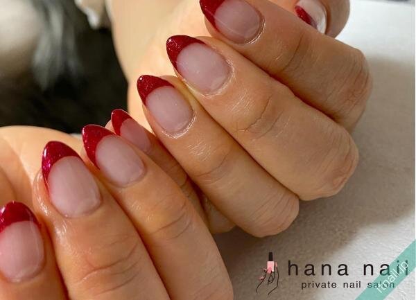 少し先端を尖らせるように整えた爪に、レッドでフレンチを描きましょう。爪の形が個性的なので、シンプルなカラーリングでもオシャレに見えます。もしフレンチラインが上手にきまらない場合は、フレンチラインの境目にラメラインを引いても良いでしょう。ストーンやパールを並べて置くのもおすすめのアレンジ方法です。