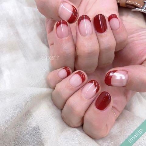 ショートネイルにもレッドのフレンチネイルは合います。レッドでフレンチネイルを描き、左右1本ずつレッドのワンカラ―にしましょう。すべての爪をフレンチネイルにするのに比べて、ちょっとカジュアルな仕上がりになりますよ♡