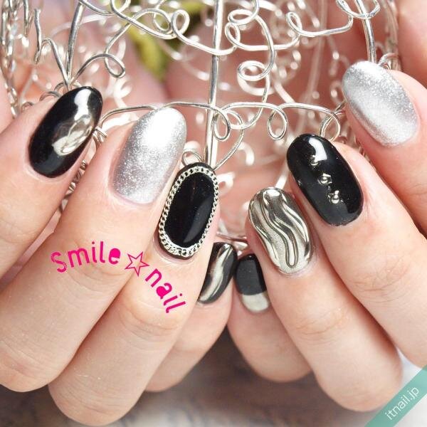 ブラック×シルバー×うねうねネイルというトレンド感のあるデザインにも、ポイントとしてチェーンの囲みデザインを加えてみましょう。カッコいいデザインに惚れ惚れする仕上がりに♡