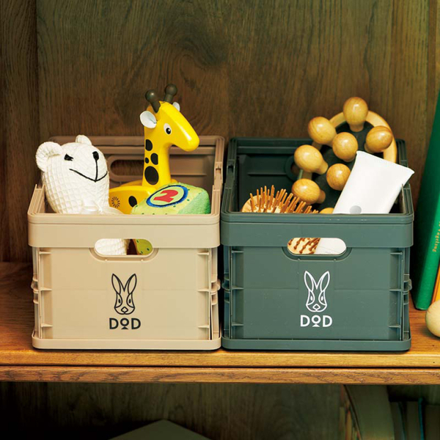 キャンプドア用品で大人気のアウトドアブランドDOD(ディーオーディー)。特別付録は折りたたんで持ち運べる、持ち手つきのコンテナボックスです。