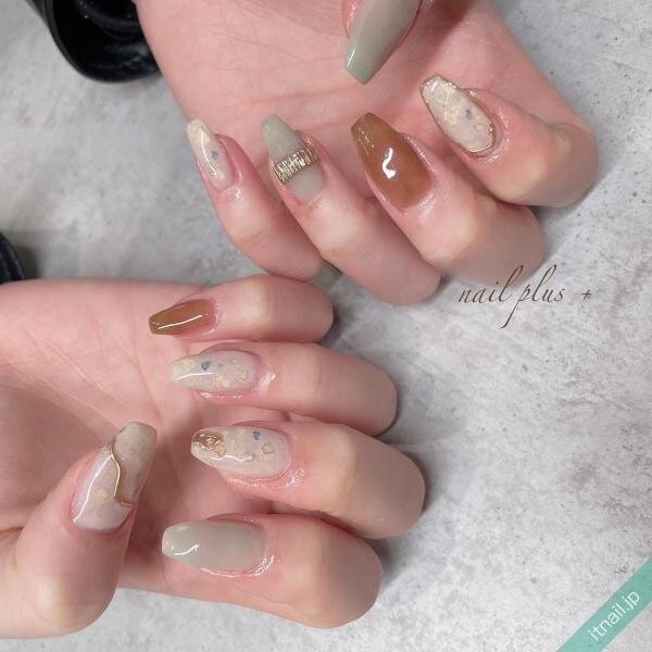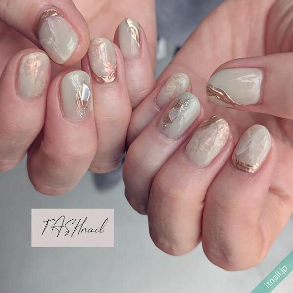 シアー系特有のもわっとしたカラーの下に埋め込んだ金箔が、奥行きを感じさせ素敵ですね◎