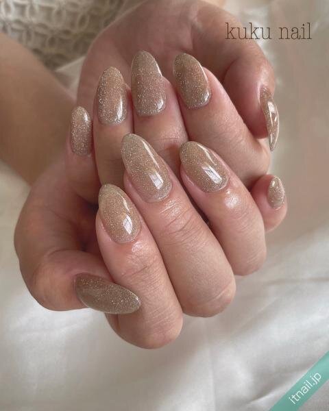 ・ラメ入りのシアーベージュで指本に輝きをプラス