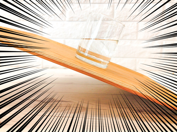 これだけ傾けてこぼれないって…マジック!?