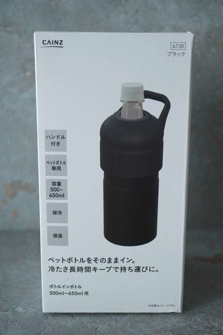 このような商品はたくさんのメーカーから販売されていますが、500ml用がほとんどで500mlサイズしか入らないことが多いです。カインズのボトルインボトルは500~650mlのペットボトルに対応しているので、数種類のペットボトルを入れることができます。