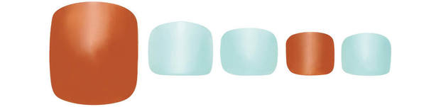 親指をマスキングテープでブロッキングし、aを2/3、bを1/3程度それぞれ2度塗り。人さし指・小指にa、中指・薬指にbを2度塗り。