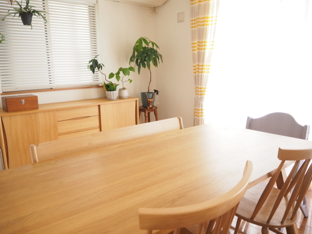 ダイニングテーブルの端の方にモノを置いてしまい、つい溜まっていませんか?まずは溜まってしまったモノを処分したり定位置に戻したりしてみましょう。一回リセットするだけで気持ちもスッキリとしますよ。
