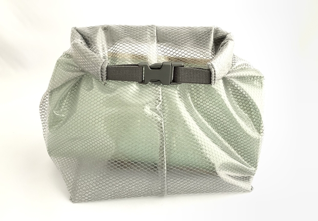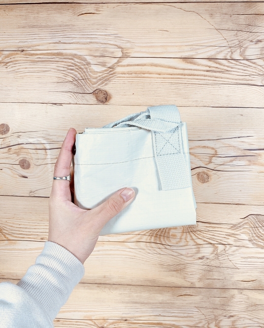 上部を3回折りたたんで、ストラップのバックルをはめると完成!