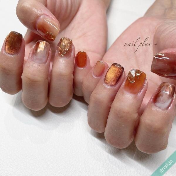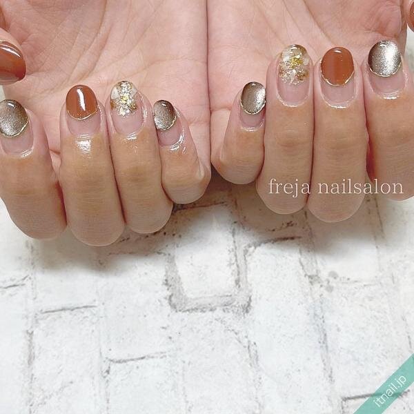 丸フレンチの可愛らしさ、ミラーデザインのカッコ良さ、マグネットジェルのトレンド感がマッチした抜け感ネイル。上品さがあるデザインなので、ショートネイルでも可愛くなりすぎません。肌馴染みの良いカラーで、悪目立ちせずに存在感を出すことができるでしょう!