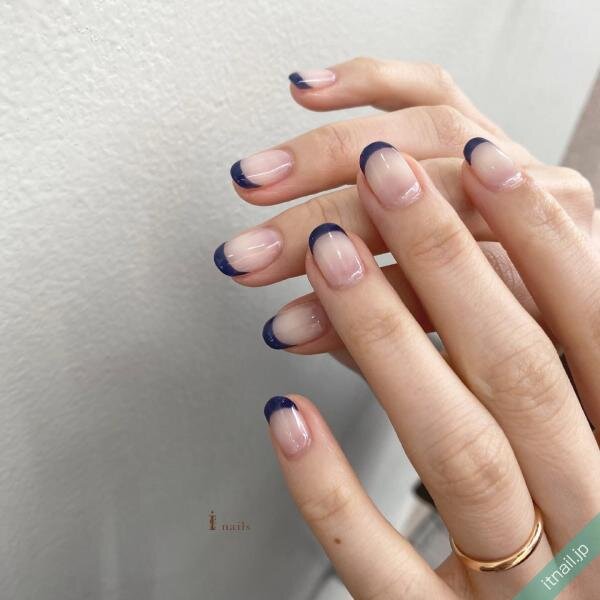 クリアカラーではなく、肌馴染みの良いスキンカラーをベースにするのもおすすめです。ベージュよりも少しピンクっぽさのあるベージュにすると、ネイビーのフレンチラインも柔らかく見えますよ♪スキニーフレンチのような細めのラインで大人っぽさを引き出すのもGOOD!
