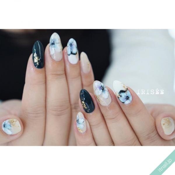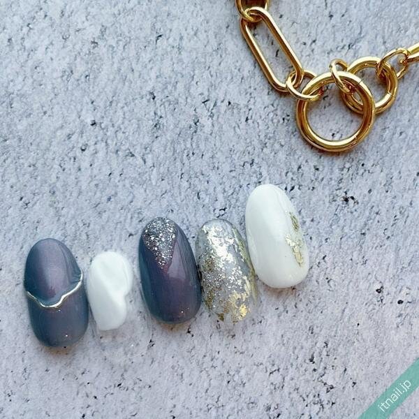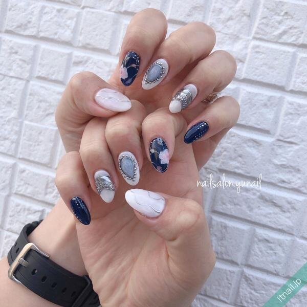 少しスモーキーなネイビーで、トレンド感のあるおしゃれネイルにするのも素敵ですよ♪相性のいいシルバーラメや、ホイルデザインを入れて、上品な輝きをプラスするのがおすすめ!ホワイトネイルの入れ方も工夫して、遊んでみるのもいいですね。