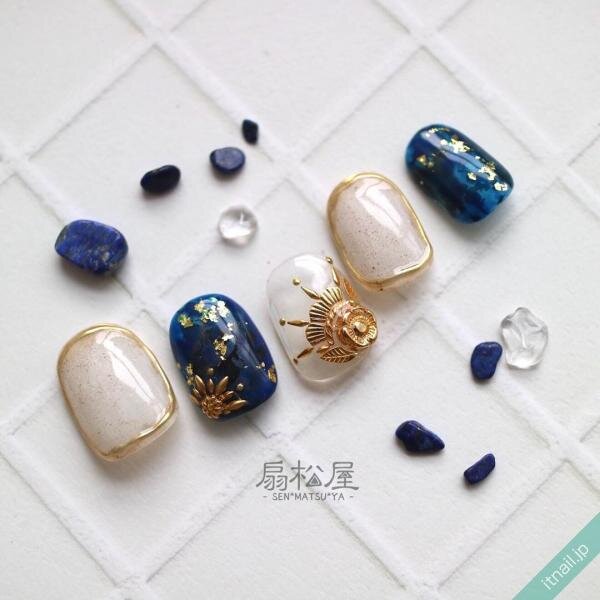 ミラーアートで楽しむおしゃれなネイビーネイル