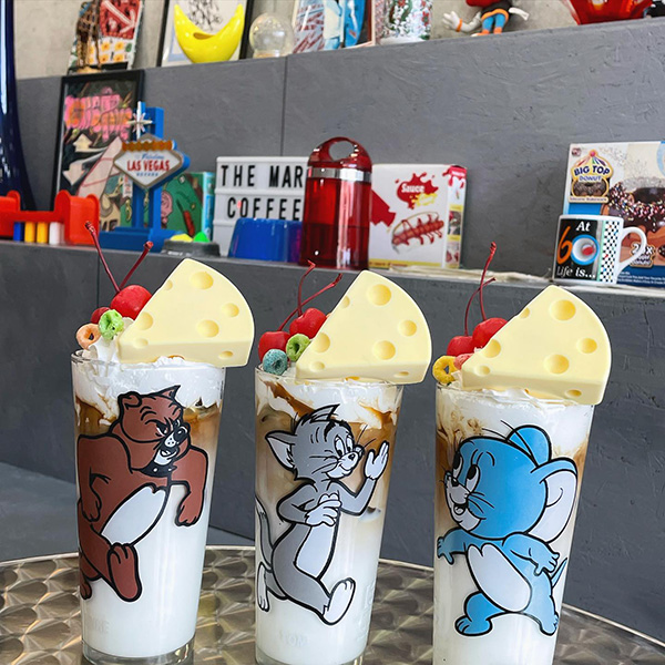 アメリカンな雰囲気が漂う店内は、気分を上げてくれること間違いなしですね。写真に写っているメニューは、一見スイーツかと思うくらいボリューム満点ですが、実はドリンク。ポップでかわいい見た目には、思わずキュンとしてしまいます。