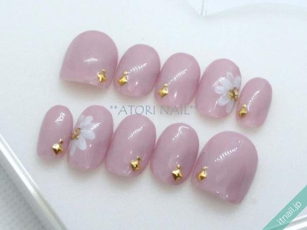 王道の大人可愛いくすみピンクとお花のネイルデザイン
