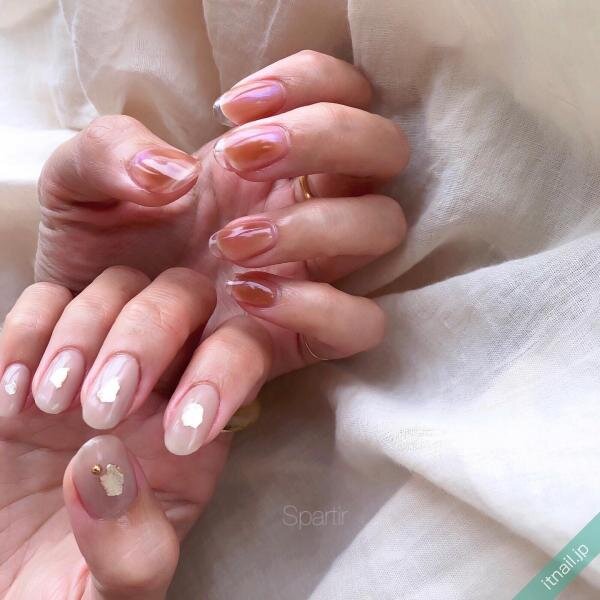 夏は淡い色のブラウンが大人気♪べた塗りのデザインも可愛いですが、抜け感が出るグラデーションネイルでこなれた指先へ!物足りないときは、ミラーアートを少し入れるとおしゃれ度がアップするのでおすすめです。