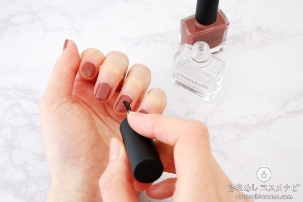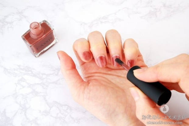 仕上がりの色味はほんのりと透け感のある乳白色。2回重ね塗りして、ミルキーな色を楽しむネイルポリッシュとしても使うことができる。爪の黄ばみなどの悩みがある人は持っておきたい1本。