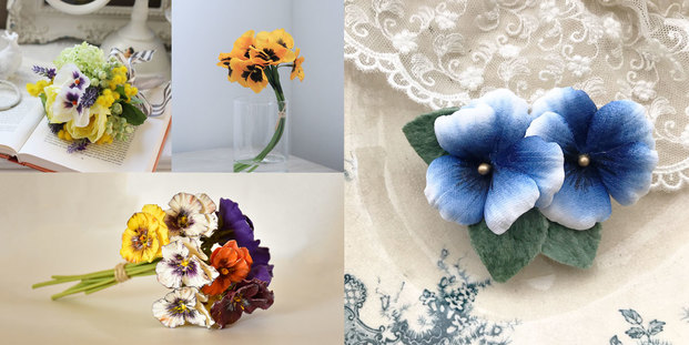 パンジーは色鮮やかでかわいらしく贈り物にも人気のお花です。色別に異なる花言葉やビオラとの違いとあわせて、かわいらしいパンジーモチーフの作品をご紹介します。