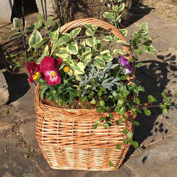 frannieさんの「パンジーとビオラのバスケットブリコラージュ」