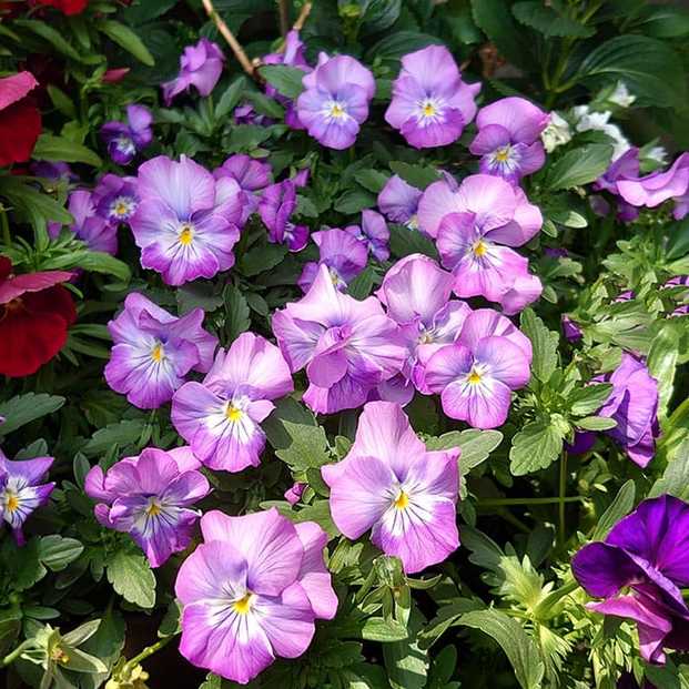 パンジーと同じくスミレ科スミレ属に分類され、よく似ている「ビオラ」という花があります。区別が曖昧なパンジーとビオラですが、一般的には花びらが5cm以上の花をパンジー、4cm以下のものをビオラと呼ぶことが多いようです。