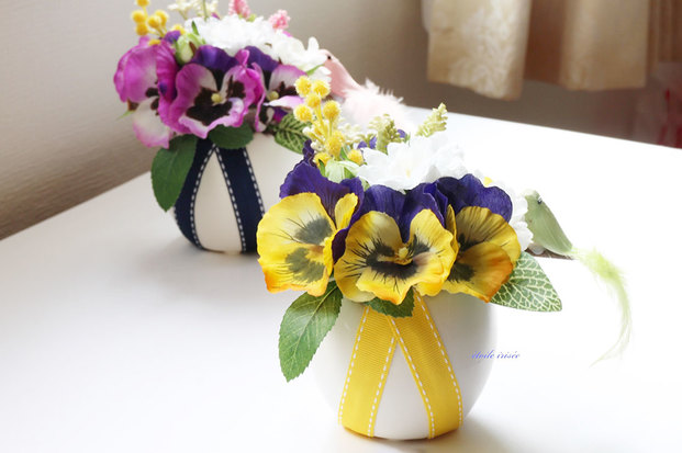 petitchocolatさんの「パンジーとチューリップのミニブーケ」