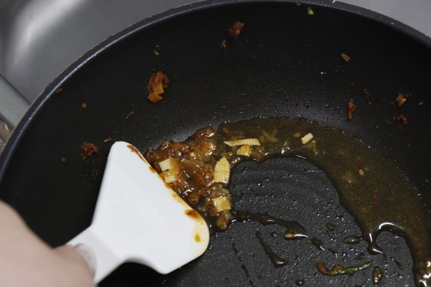 セリアの『水切りカゴにかけられるスクレーパー』は先端がやわらかいので、お皿やフライパンなどにしっかりフィット。