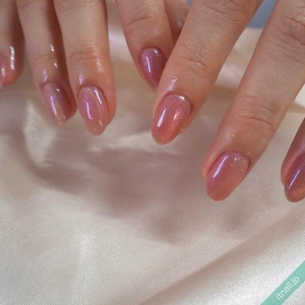 オーロラ感が増すと、ドリーミーでカジュアルな装いに。揺らめくオーロラカラーは、夏の暑さも吹き飛ばしてくれる軽やかさです。あえてショートネイルにすることで、ギャルっぽさがなくお洒落なピンクオーロラネイルになります。