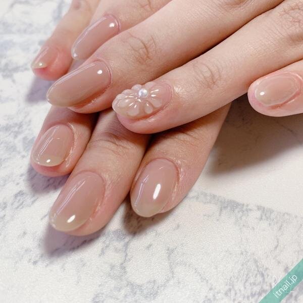 こちらは、ヌーディーカラーに3Dフラワーをくみあわせたシンプルなデザイン。
