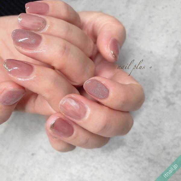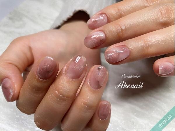もやもやネイルとピンクベージュの効果で全体が柔らかく優しい雰囲気に包まれています。