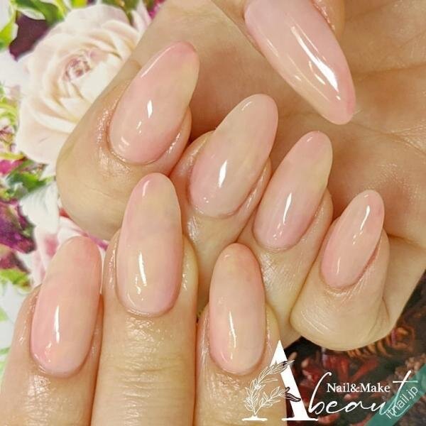 さり気なく桃ネイルを楽しみたいときは、全体を淡い色でまとめるといいですよ♪ほんのりピンクを感じる柔らかな仕上がりがとっても可愛いですよね。愛されネイルを意識したいおしゃれさんからも人気のデザインです。