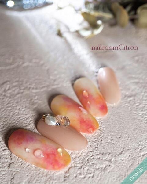 マットな質感に仕上げた桃ネイルも大人気!桃の表面を意識したような仕上がりになりますし、みずみずしい水滴も引き立ちます。桃を水で洗ったときのような指先を楽しみたい方におすすめのデザインです♪