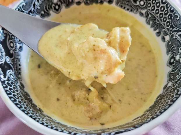 千切りしょうがの歯ごたえがよく、グリーンカレーを思わせる味です。