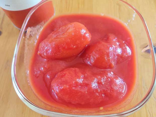 トマトは皮を剥き、トマトジュースに漬けこんであります。