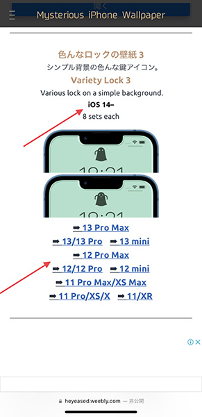 使用したい壁紙が決まったら、iOSバージョンを確認し、デバイスの種類別に公開されているダウンロードページへ進みましょう。