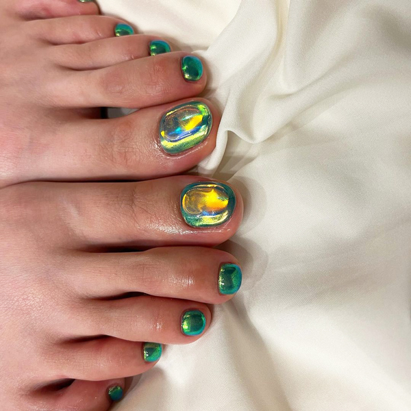 最初にご紹介するのが、今季のトレンドカラーである「グリーンネイル」。