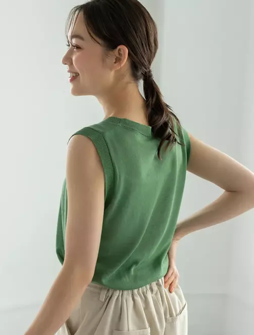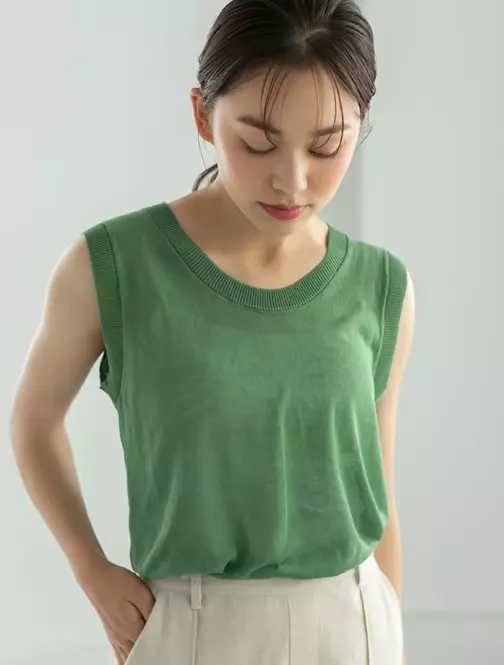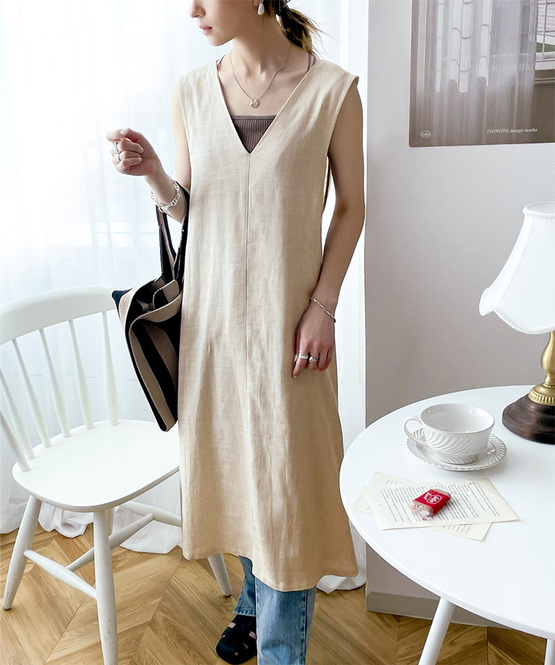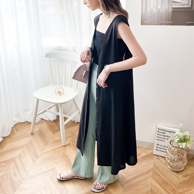 ほんのり透け感のあるリネンの風合いが、今季にぴったりなロングジレベスト。