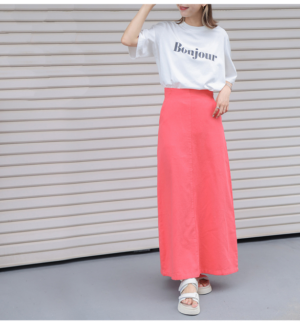 シンプルなきれいめトップスを合わせれば、お仕事コーデにも重宝しそう。ほんのり甘い夏コーデを楽しみたい方に!
