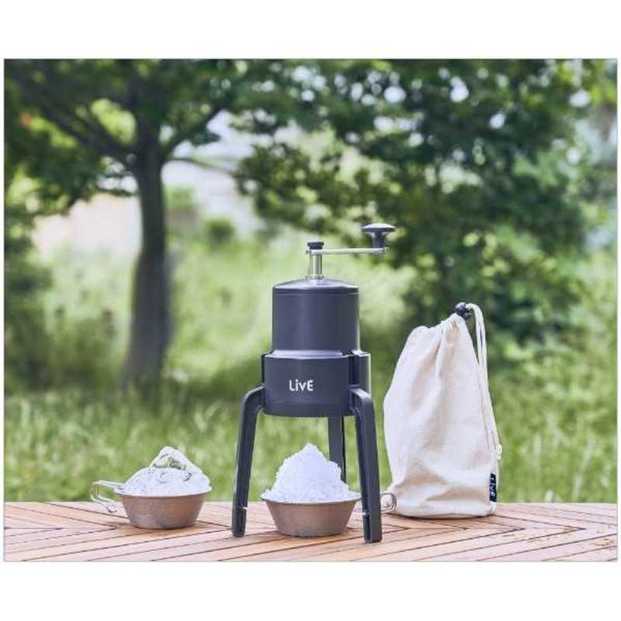 おうちの中でも、キャンプ場でも使えるかき氷器は、足部分が取りはずせるのでコンパクトに収納できます。