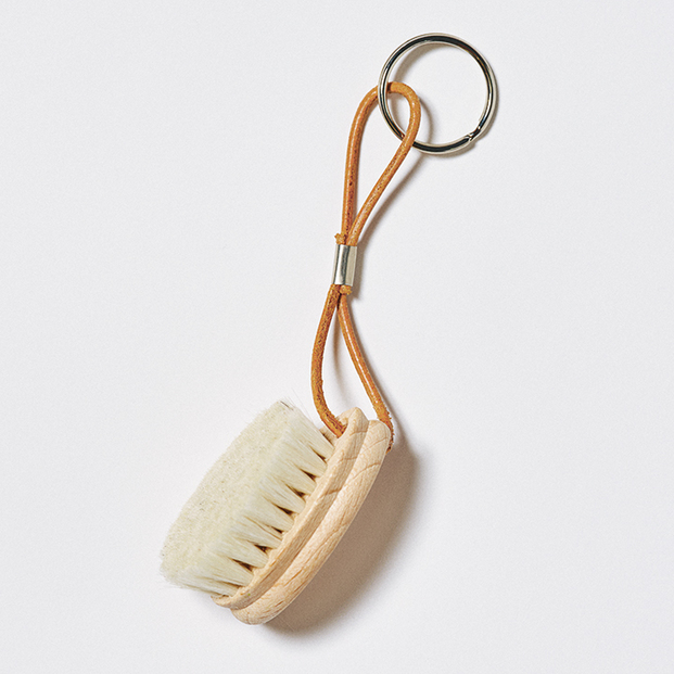 ドイツの老舗ブラシメーカー《レデッカー》の「ミニチュアブラシキーホルダー」。柔らかなヤギ毛を採用しており、外出先でのお手入れに便利。