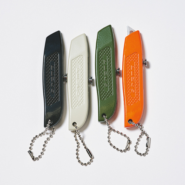 ボールチェーンが付いたポケットサイズのカッターナイフ。刃先は2 段階の長さで調節ができる。