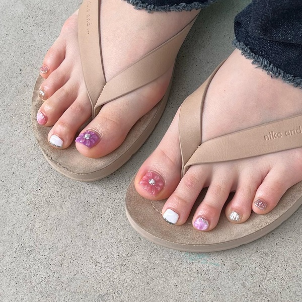 足元は、派手じゃなくて上品にしたい...。そんな方におすすめなのが「ホワイトのフラワーネイル」です。