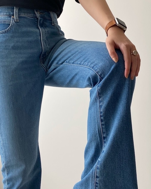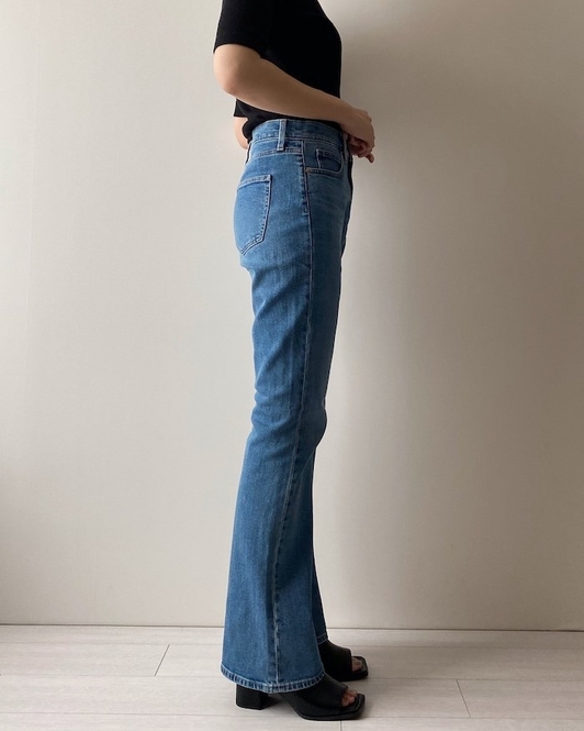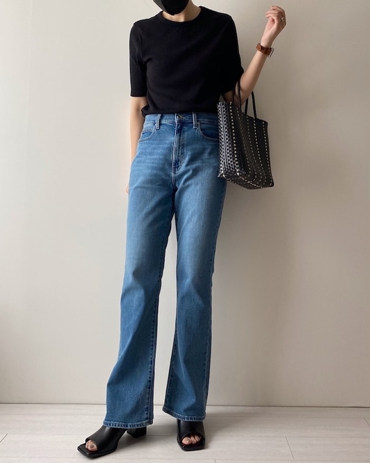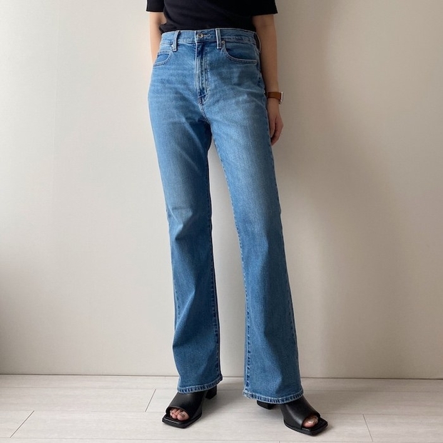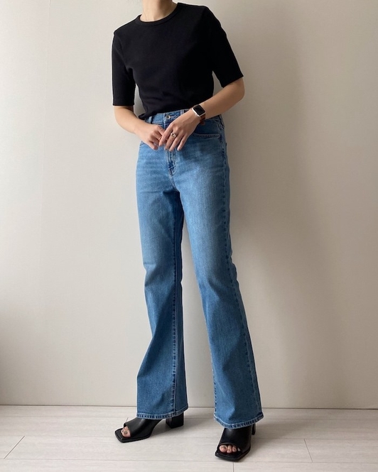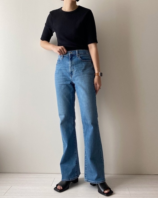 UNIQLO(ユニクロ)の「スリムフレアジーンズ」は、履くだけで足をすらっと長く見せてくれるのが魅力。身長に合わせて丈の長さが選べるから、裾直しでフレアシルエットが崩れる心配もありませんよ〜!